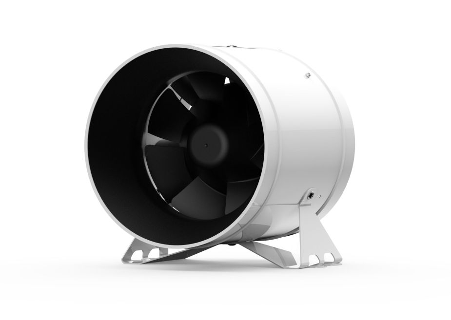 - 40W 6” EC inline fan with 6-stage “set and forget” temperature controller running up to 5000RPM and 350CFM flow rate.